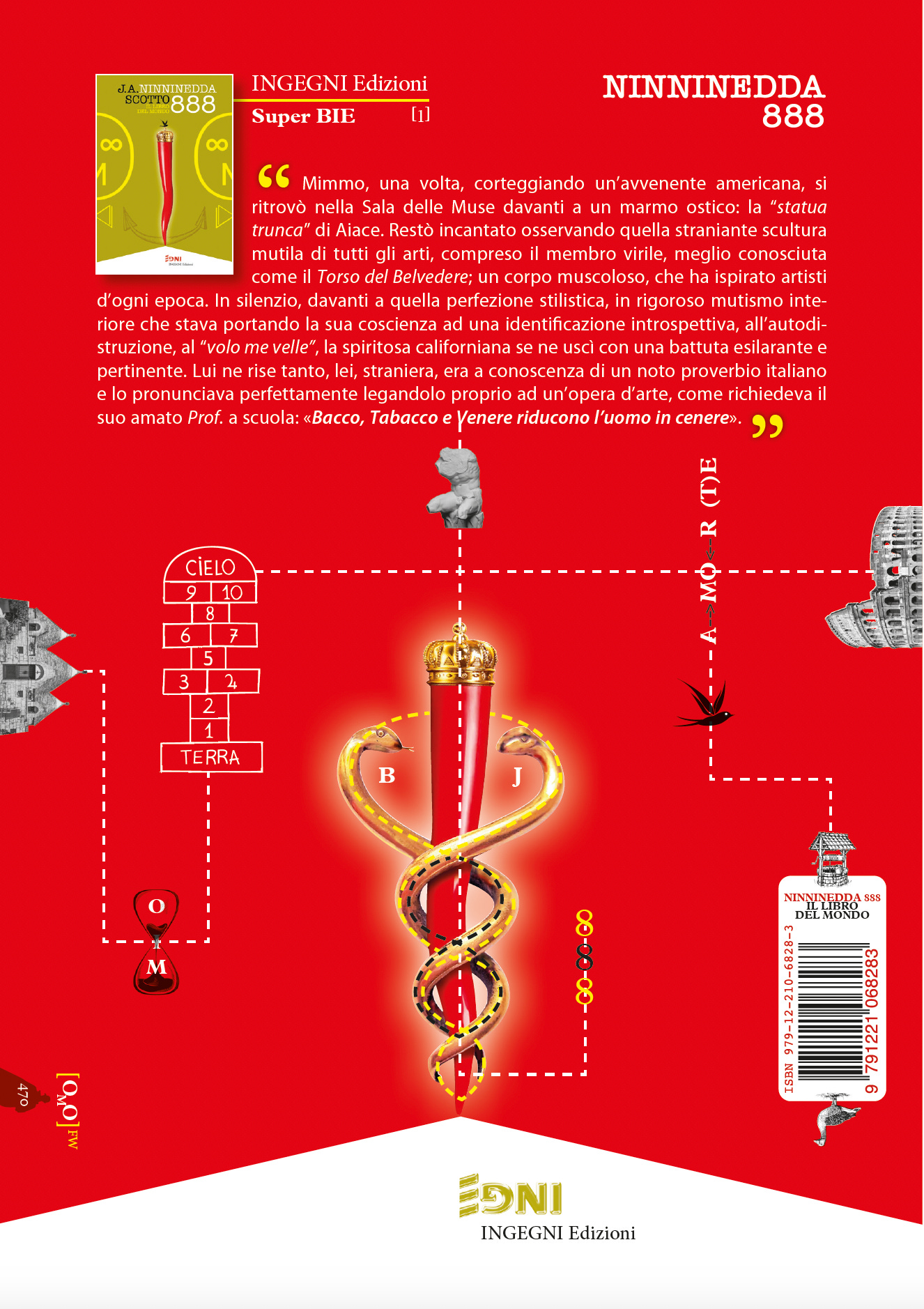 È un libro speciale e diverso da tutti i generi in circolazione. Non lo troverete in nessuna libreria perché nessuna casa editrice ha avuto il coraggio di pubblicarlo e di conseguenza nessuna distribuzione lo ha preso in carico prendendosi, solo lei che non c’entra nulla con la bravura dell’autore, la collaborazione dell’editor ed il coraggio imprenditoriale dell’editore e lo sforzo della libreria, il 65% del prezzo di copertina, per poi tirarlo via da una libreria dopo poche settimane di presenza sugli scaffali, invisibile insieme agli altri. Per questo motivo ho inventato una mia casa editrice: INGEGNI Edizioni (ovvero una nuova etichetta editoriale indipendente), ho registrato il libro nel circuito ISBN (979-12-210-6828), visibile su tutti i canali di vendita online e caricato personalmente sul circuito Amazon, l’unico posto dove potete realmente acquistarlo (qui è dove pago le spese di magazzino, di logistica e di spedizione, per cui a me arriva solo (rispetto al prezzo di vendita stampato sul libro) meno della metà del prezzo di acquisto, ben diverso dal prezzo di copertina).
